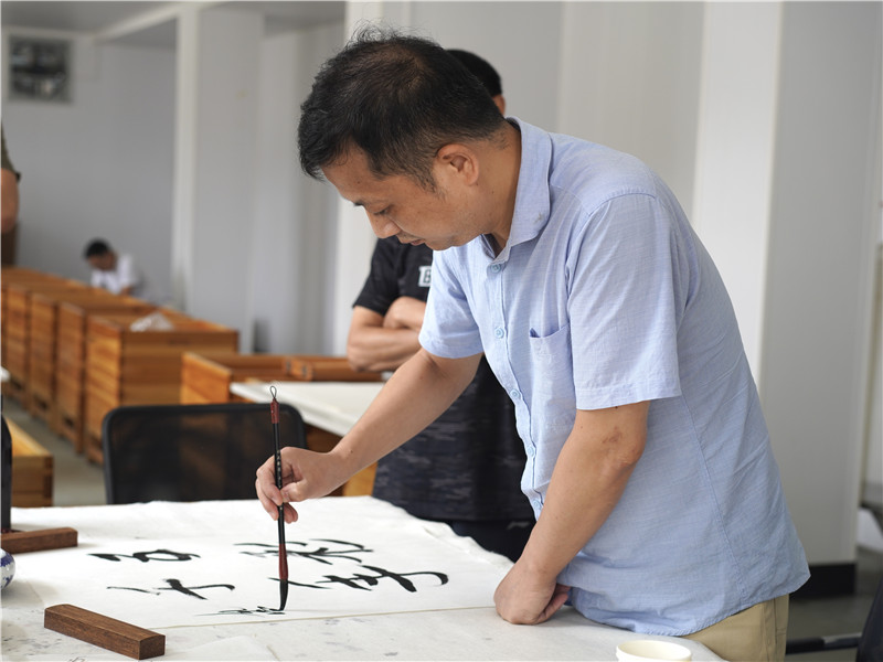 感謝休寧縣書法協(xié)會主席胡社文陪同安徽省青年書法家協(xié)會主席王亞洲等藝術(shù)家到公司指導(dǎo),體驗徽州楮皮紙傳統(tǒng)技藝。