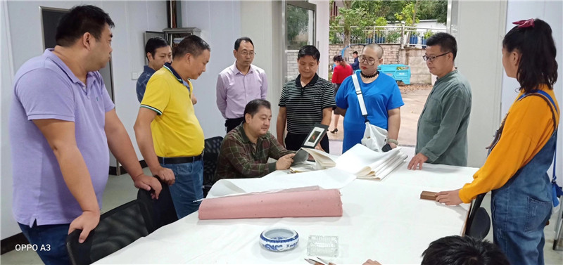 感謝休寧縣書法協(xié)會(huì)主席胡社文陪同安徽省青年書法家協(xié)會(huì)主席王亞洲等藝術(shù)家到公司指導(dǎo),體驗(yàn)徽州楮皮紙傳統(tǒng)技藝。