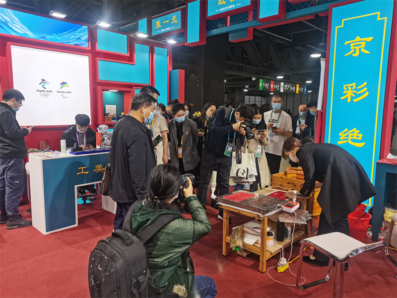 人文交流區(qū)E2區(qū)熱鬧非凡,現(xiàn)場了解傳統(tǒng)手工紙制作技藝。
